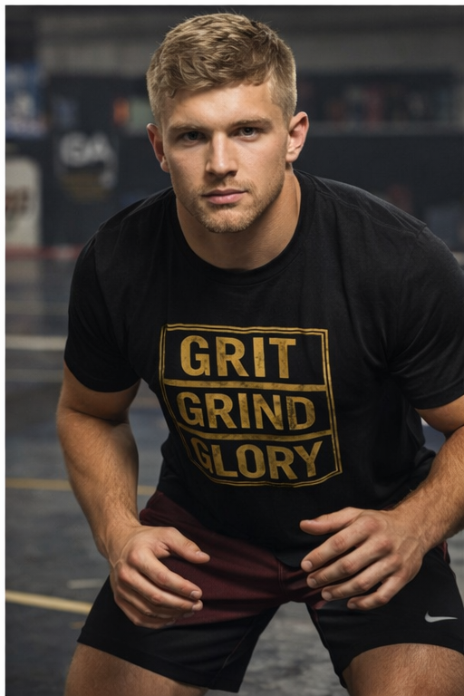This tee wears like quiet confidence. A clean, classic crew silhouette carries a bold, distressed block print that reads GRIT / GRIND / GLORY — a three-line rally that speaks to early mornings, last reps, and the slow climb toward something that matters. The lightweight 100% ring-spun cotton feels soft against the skin while the ribbed collar, shoulder tape, and tear-away label keep it comfortable session after session. It pairs with worn jeans or training shorts and settles into routines without shouting — an honest shirt for people who value effort over flash.